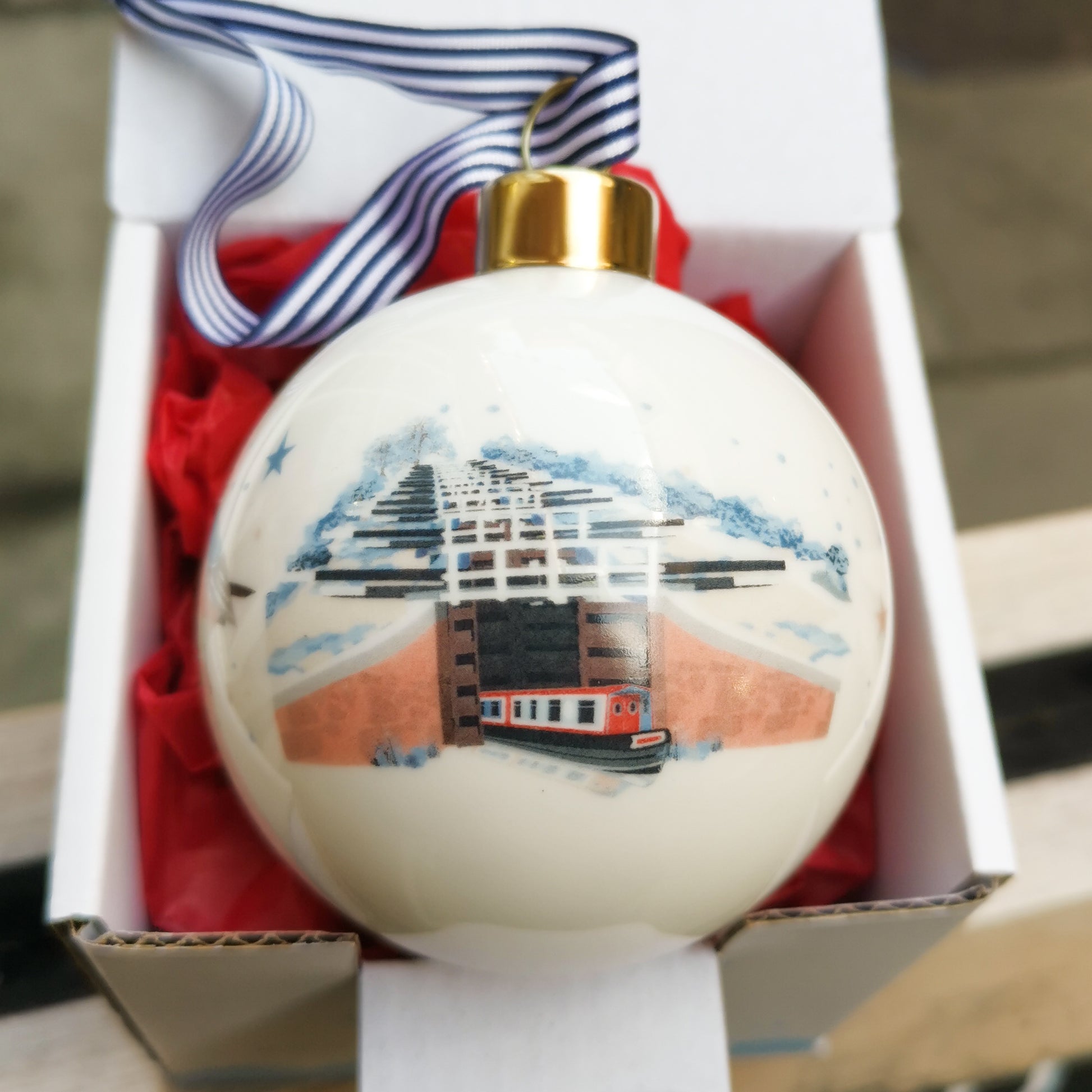 This gorgeous china bauble, exclusive to us here at Happiness Is Handmade, is sure to take pride of place on any tree this Christmas. A little piece of the places we love to hang on your tree, the bauble is decorated by hand in the UK with lovely rainbow and gold foil detail.