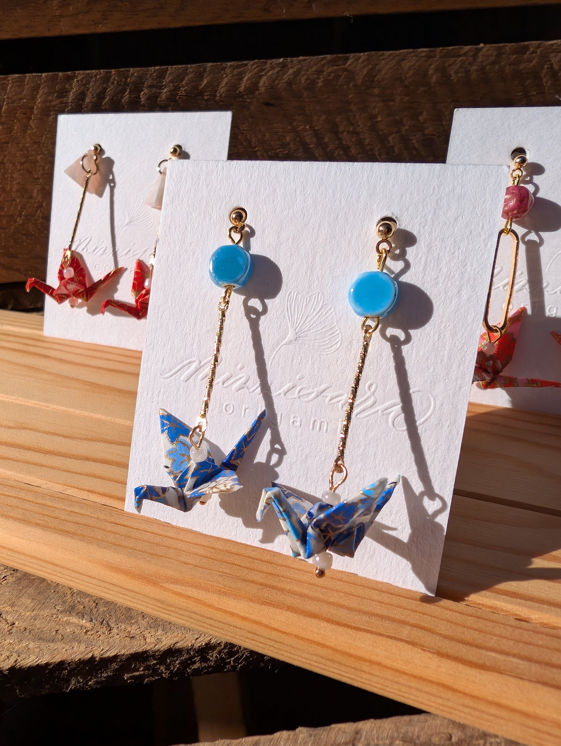 Crafted from premium origami washi paper sourced from Japan, these earrings feature delicate folds and are meticulously handled for quality. To ensure durability, each folded paper piece is reinforced with a layer of glue, provides strength and helps maintain their delicate appearance.