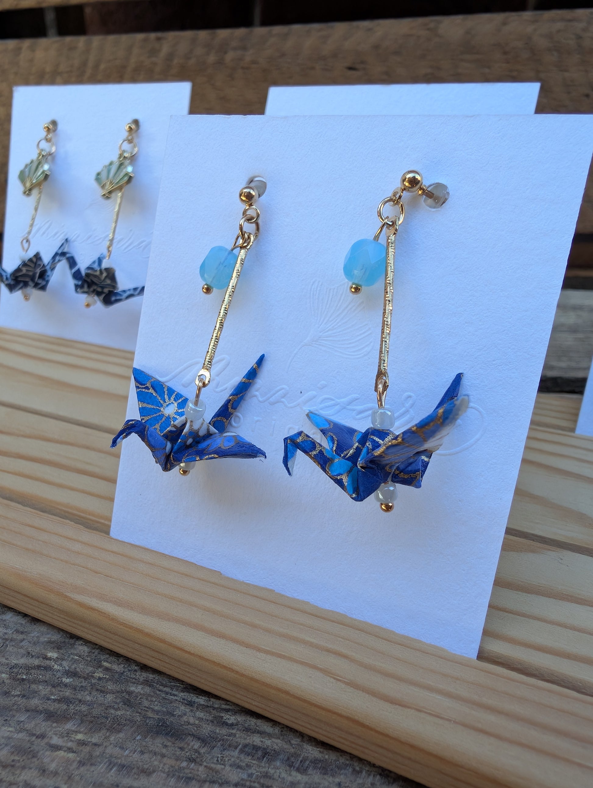 These earrings measure approximately 5-6cm long and the cranes wingspans measure around 3cm.