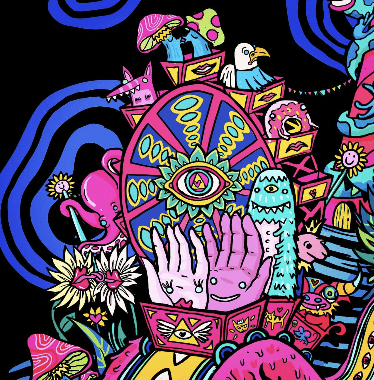 Marta Zubieta is a Spanish artist living in Bristol. She finds inspiration from 90s cartoons, sci-fi, pop-surrealist art, and Latin folklore to create 'adult illustrations for forever teenagers.'