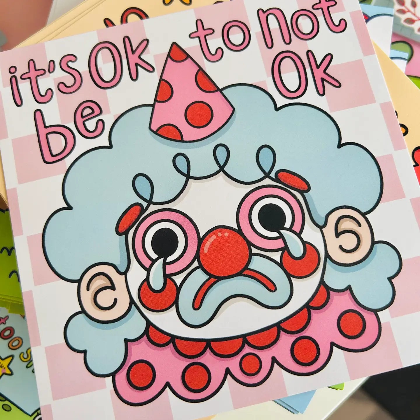 Embrace your emotions with the "It's OK To Not Be OK" Sad Clown Square Print.