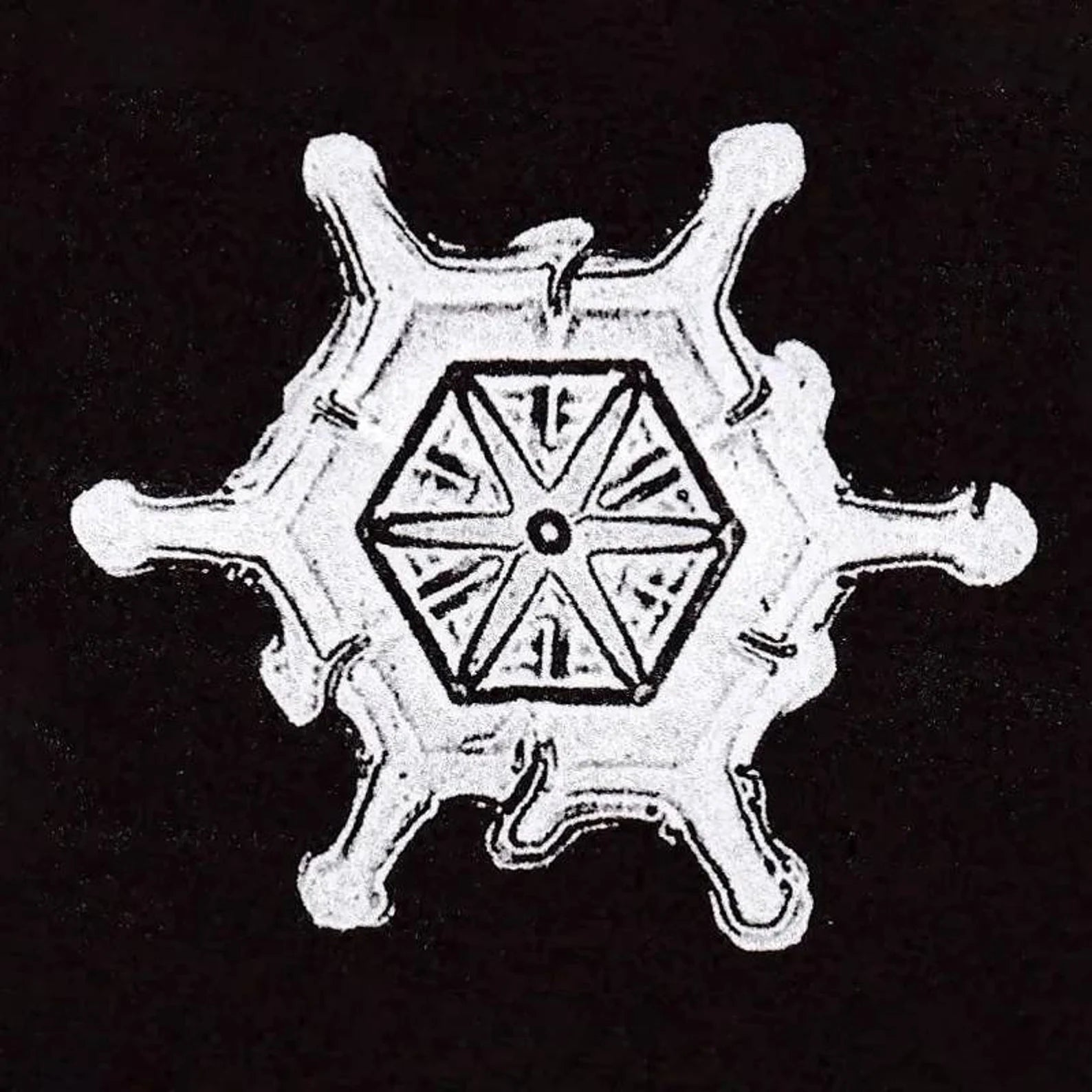 This 'stellar plate' pin was designed by Enfield based Kate of Irregular Thoughts. It features a white enamel on a dark nickel pin and depicts a snowflake inspired by the macro photography of Wilson 'snowflake' Bentley.