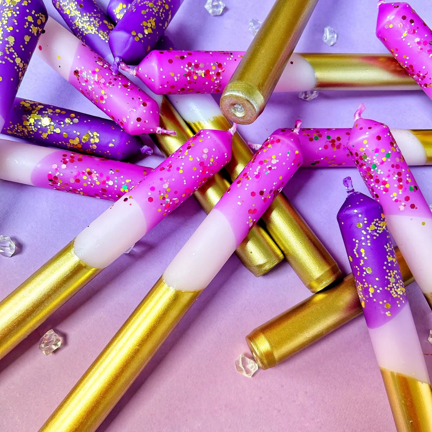 Sugar Plum Fairies Dip Dye Dinner Candle - Set Of 4