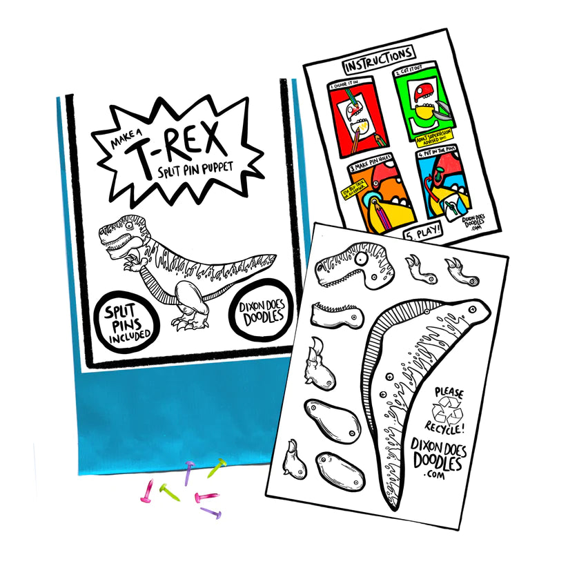 An awesome T-Rex split pin puppet craft pack for ages 4 and up.