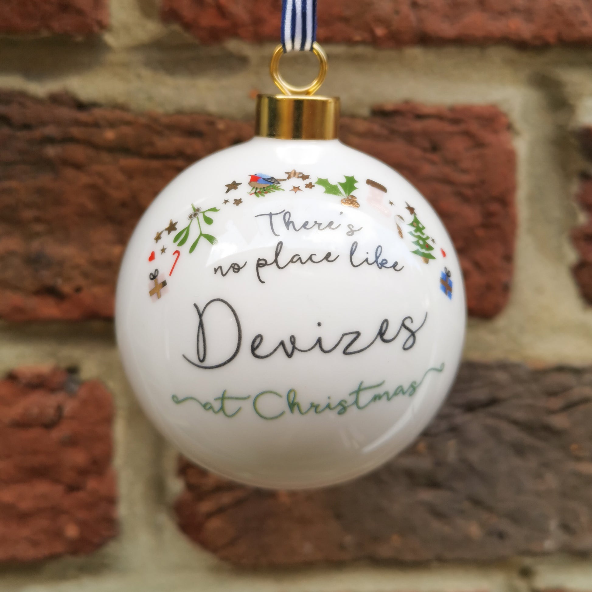 'There's No Place Like Devizes At Christmas' Ceramic Christmas Bauble